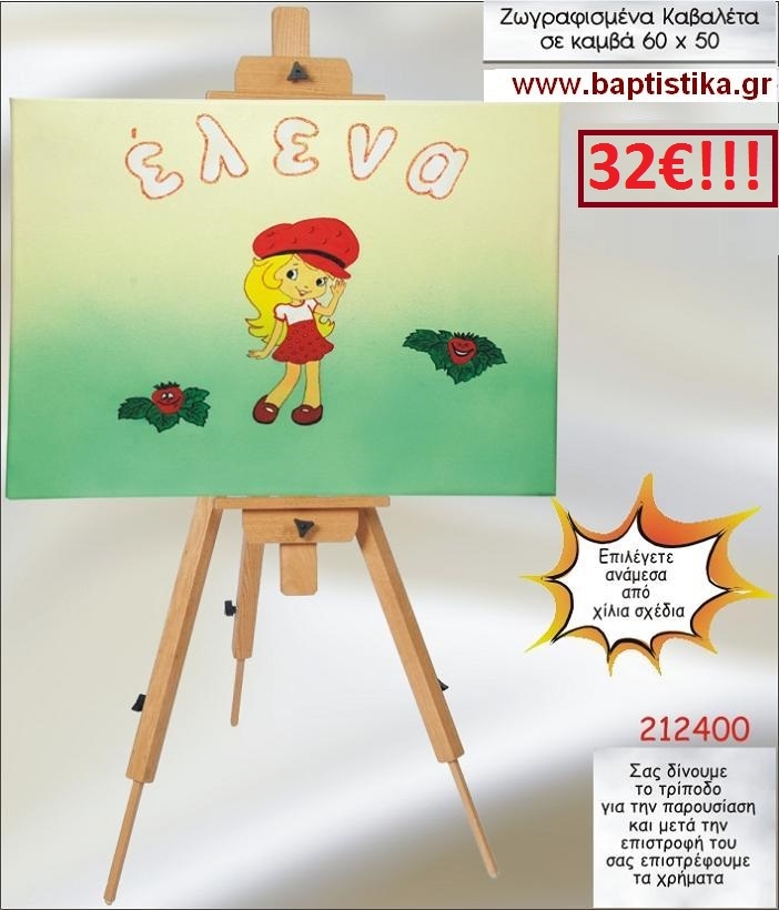ΤΟ ΚΑΒΑΛΕΤΟ ΕΙΝΑΙ ΑΡΙΣΤΑ ΖΩΓΡΑΦΙΣΜΕΝΟ ΣΤΟ ΧΕΡΙ ΣΕ ΚΑΜΒΑ 60Χ50 ΩΣΤΕ ΜΕΤΑ ΤΗΝ ΒΑΠΤΙΣΗ ΝΑ ΣΑΣ ΜΕΙΝΕΙ ΓΙΑ ΠΑΝΤΑ.Η ΤΙΜΗ ΔΕΝ ΠΕΡΙΛΑΜΒΑΝΕΙ ΤΟ ΤΡΙΠΟΔΟ ΤΟ ΟΠΟΙΟ ΣΑΣ ΤΟ ΔΙΝΟΥΜΕ ΚΑΙ ΜΕΤΑ ΤΗΝ ΒΑΠΤΙΣΗ ΜΑΣ ΤΟ ΕΠΙΣΤΡΕΦΕΤΕ ΚΑΙ ΣΑΣ ΕΠΙΣΤΡΕΦΟΥΜΕ ΤΑ ΧΡΗΜΑΤΑ ΠΟΥ ΕΧΕΤΕ ΔΩΣΕΙ.