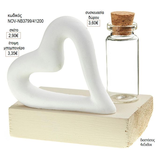 καρδιά κεραμική γυάλινο μπουκαλάκι σε ξύλινη βάση NOV ΝΒ3799/41200