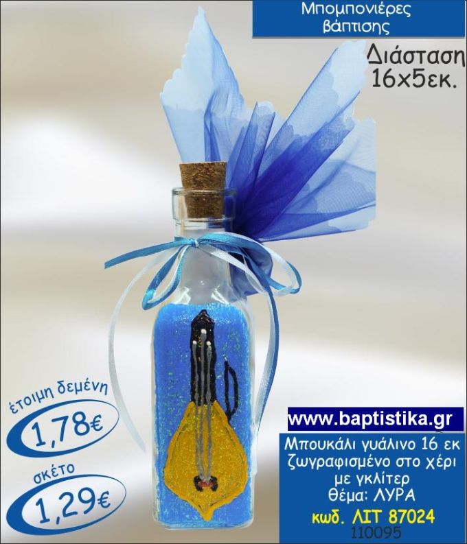 ΜΠΟΥΚΑΛΙ ΓΥΑΛΙΝΟ ΖΩΓΡΑΦΙΣΜΕΝΟ ΣΤΟ ΧΕΡΙ ΜΕ ΓΚΛΙΤΕΡ ΜΕ ΘΕΜΑ ΛΥΡΑ μπομπονιέρες βάπτισης - γαμου & δώρα πάρτυ σε οικονομικές και φτηνές τιμές Ιλισια Ζωγραφου ΜΕΓΑΛΕΣ ΠΡΟΣΦΟΡΕΣ ΕΝΤΟΣ ΚΑ