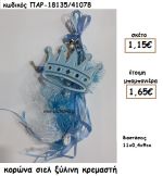 ΚΟΡΩΝΑ ΞΥΛΙΝΗ ΚΡΕΜΑΣΤΗ ΣΕ ΧΡΩΜΑ ΣΙΕΛ ΓΙΑ ΜΠΟΜΠΟΝΙΕΡΑ ΒΑΠΤΙΣΗΣ ΠΑΡ-18135/41078