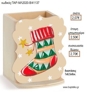 ΚΑΛΤΣΑ ΧΡΙΣΤΟΥΓΕΝΝΙΑΤΙΚΗ ΞΥΛΙΝΟ ΚΟΠΤΙΚΟ ΣΕ ΞΥΛΙΝΗ ΜΟΛΥΒΟΘΗΚΗ για μπομπονιέρες - δώρα πάρτυ - εορτών - γέννησης - γούρια - φτιάξτο μόνος σου ΠΑΡ-ΜΛ2020-Β/41137 2.07€!!!