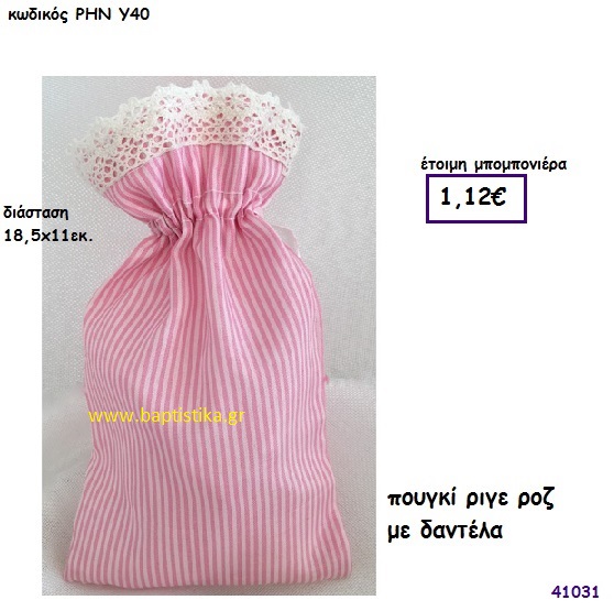 ΠΟΥΓΚΙ ΡΟΖ ΡΙΓΕ ΜΕ ΔΑΝΤΕΛΑ μπομπονιέρα Βάπτισης ΡΗΝ-Υ40