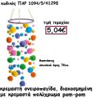 ΟΝΕΙΡΟΠΑΓΙΔΑ ΚΡΕΜΑΣΤΗ ΔΙΑΚΟΣΜΗΜΕΝΗ ΜΕ ΠΟΛΥΧΡΩΜΑ POM-POM ΓΙΑ ΔΙΑΚΟΣΜΗΣΗ ΒΑΠΤΙΣΗΣ ΠΑΡ-1094/5