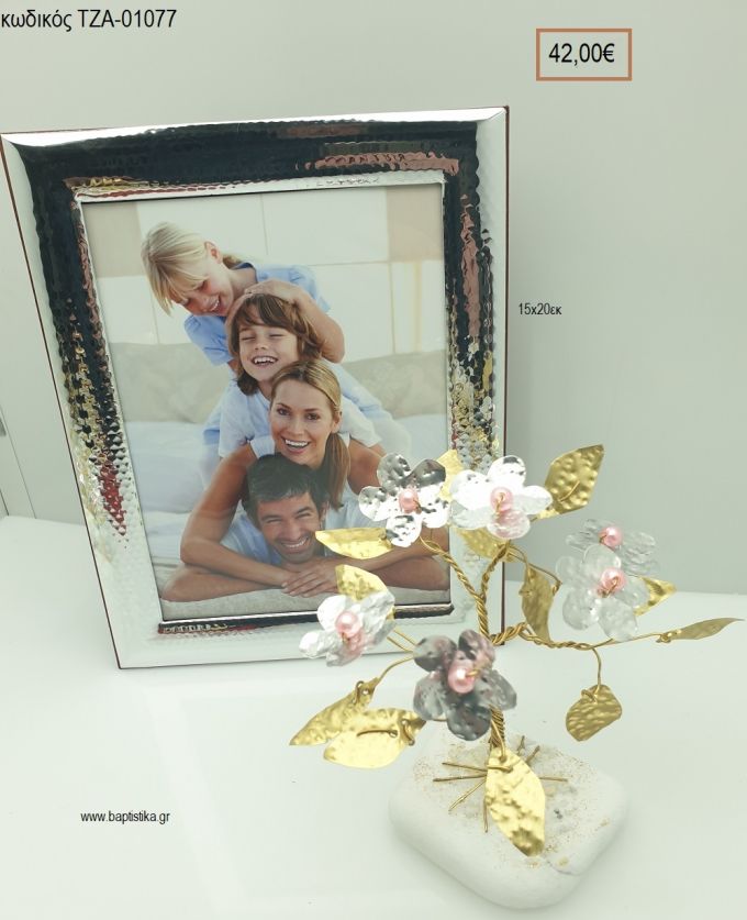 Η κορνίζα μεγέθους φωτογραφίας 15χ19 είναι  κατασκευασμένη με επίστρωση άργυρου 950° επί συνθετικού ή μεταλλικού υποστρώματος.