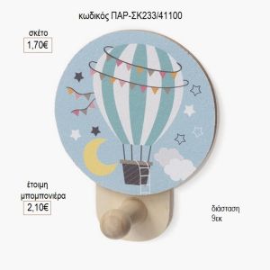 αερόστατο γαλάζιο ξύλινο κοπτικό σε κρεμάστρα παρ σκ233