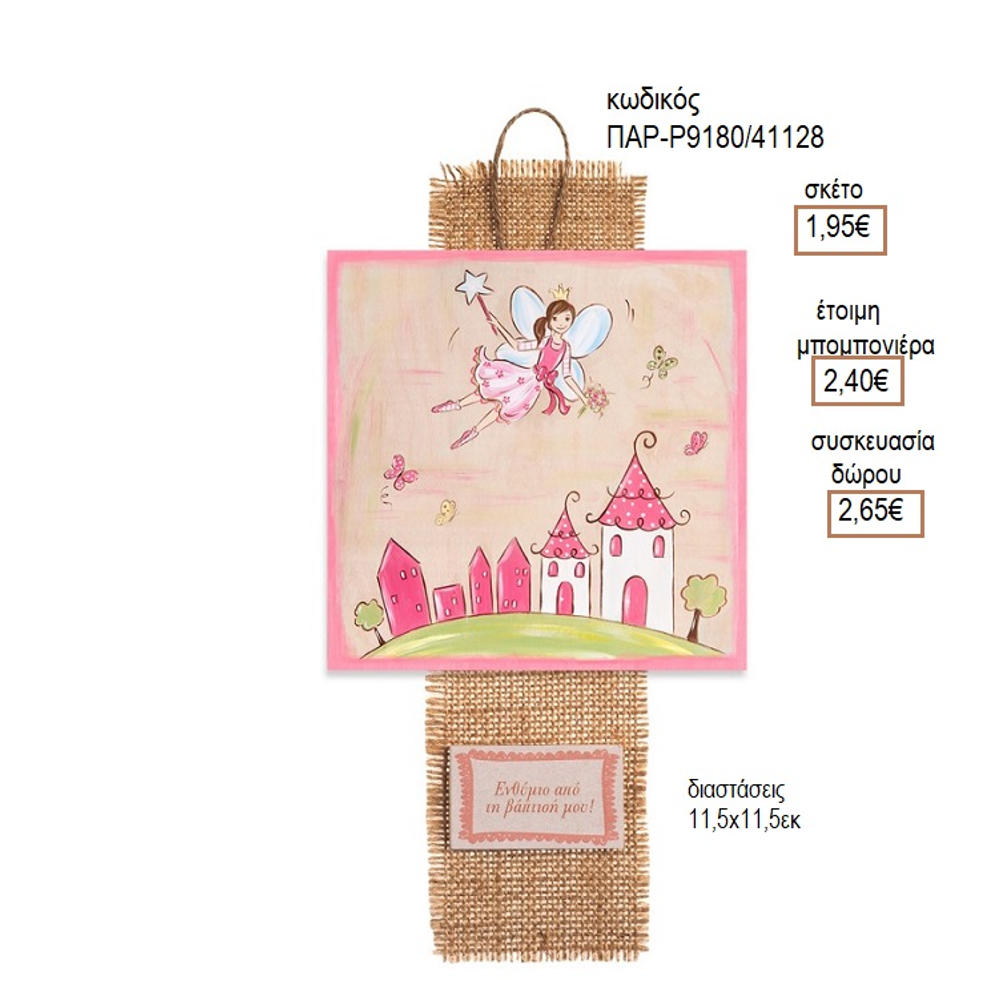 Μπορείτε να το ζητήσετε ως έτοιμη μπομπονιέρα με άριστο δέσιμο με κρυσταλιζέ τούλι 24χ24εκ.και 5 κουφέτα αμυγδάλου ή 5 κουφέτα πικολίνο (σοκολάτας) ή 15 σμάρτυς και 2 κορδέλες σατέν 0.03εκ.
