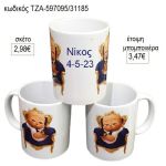 Μπορείτε να επιλέξετε το θέμα της κούπας , καθώς επίσης μπορείτε να προσθέσετε το όνομα του παιδιού και την ημερομηνία βάπτισης.