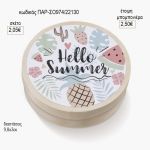 hello summer στρογγυλό ξύλινο κουτάκι με αυτοκολλητο παρ σο974