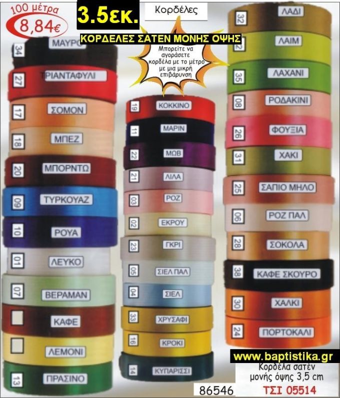 3.5εκ.ΣΑΤΕΝ ΚΟΡΔΕΛΑ ΜΟΝΗΣ ΟΨΗΣ για μπομπονιέρες & συσκευασίες σε οικονομικές φτηνές τιμές ΖΩΓΡΑΦΟΥ ΙΛΙΣΙΑ ΚΑΙΣΑΡΙΑΝΗ ΓΟΥΔΙ ΠΑΓΚΡΑΤΙ