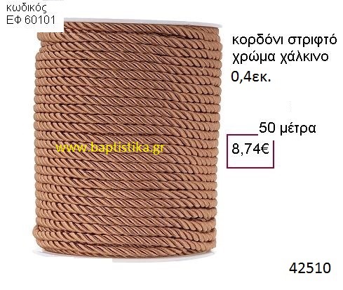 ΚΟΡΔΟΝΙ ΣΤΡΙΦΤΟ 50 μέτρων 0.4εκ. για μπομπονιέρες-αμπαλάζ ΕΦ-60101