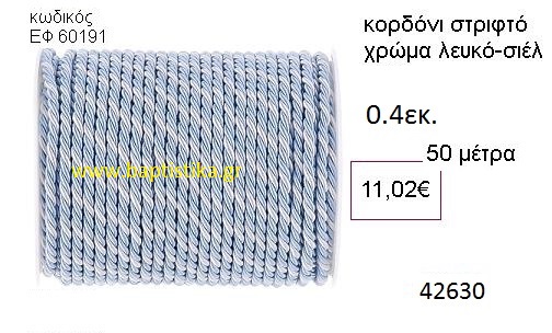 ΚΟΡΔΟΝΙ ΣΤΡΙΦΤΟ 50 μέτρων 0.4εκ. για μπομπονιέρες-αμπαλάζ ΕΦ-60191