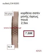 ΣΑΤΕΝ ΠΟΥΑ ΜΟΝΗΣ ΟΨΕΩΣ κορδέλα 50 μέτρων 2,5εκ. για μπομπονιέρα-αμπαλάζ ΕΦ-60265