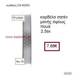 ΣΑΤΕΝ ΠΟΥΑ ΜΟΝΗΣ ΟΨΕΩΣ κορδέλα 50 μέτρων 2,5εκ. για μπομπονιέρα-αμπαλάζ ΕΦ-60265