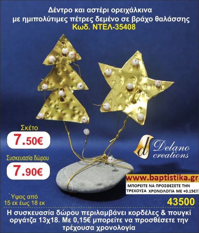 • ΔΕΝΤΡΟ ΚΑΙ ΑΣΤΕΡΙ ΟΡΕΙΧΑΛΚΙΝΑ ΜΕ ΗΜΙΠΟΛΥΤΙΜΕΣ ΠΕΤΡΕΣ ΔΕΜΕΝΟ ΣΕ ΒΡΑΧΟ ΘΑΛΑΣΣΗΣ ΝΤΕΛ 35408 χειροποίητο ορειχάλκινο γούρι by DELANO collections