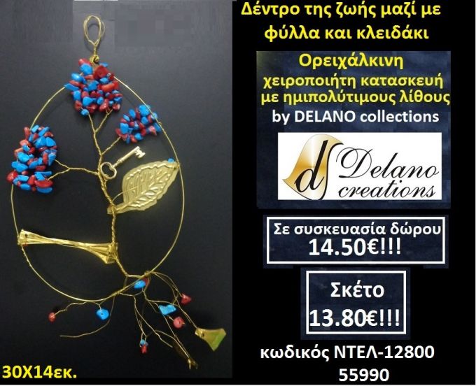 • ΔΕΝΤΡΟ ΤΗΣ ΖΩΗΣ ΜΑΖΙ ΜΕ ΦΥΛΛΑ ΚΑΙ ΚΛΕΙΔΑΚΙ ΜΕ ΗΜΙΠΟΛΥΤΙΜΟΥΣ ΛΙΘΟΥΣ χειροπίητο ορειχάλκινο by DELANO collections ΝΤΕΛ 12800