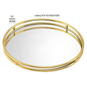 δίσκος γάμου στρογγυλό με καθρέπτη διπλό μέταλλο χρυσό nov κδ 062/415200