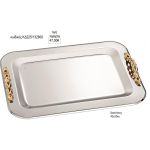 δίσκος γάμου ορθογώνιο inox με χρυσά πλεξούδα χερούλια nov κδ225