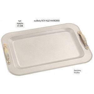 δίσκος γάμου ορθογώνιο inox με αντικέ χερούλια nov κδ490Β