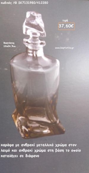 ΚΑΡΑΦΑ ΔΙΑΦΑΝΗ ΜΕ ΑΣΗΜΙ ΑΠΟΧΡΩΣΗ ΣΤΗ ΒΑΣΗ ΓΙΑ ΓΑΜΟ ΚΩΔ.ΛΒ-CK2371490/411710 28.30€!!!
