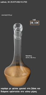 ΚΑΡΑΦΑ ΔΙΑΦΑΝΗ ΜΕ ΦΥΛΛΑ ΧΡΥΣΟΥ ΣΤΗ ΒΑΣΗ ΓΙΑ ΓΑΜΟ ΚΩΔ.ΛΒ-CK2471480/411700 28.10€!!!