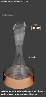 ΚΑΡΑΦΑ ΔΙΑΦΑΝΗ ΠΛΑΓΙΟ ΠΩΜΑ ΜΕ ΡΟΖ - ΧΡΥΣΟ ΑΠΟΧΡΩΣΗ ΣΤΗ ΒΑΣΗ ΓΙΑ ΓΑΜΟ ΚΩΔ.ΛΒ-SK1641588/411830 30.20€!!!