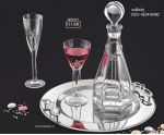 Το σετ περιέχει 1 καράφα , 1 ποτήρι κρασιού , 2 ποτήρια σαμπάνιας και 1 δίσκο.