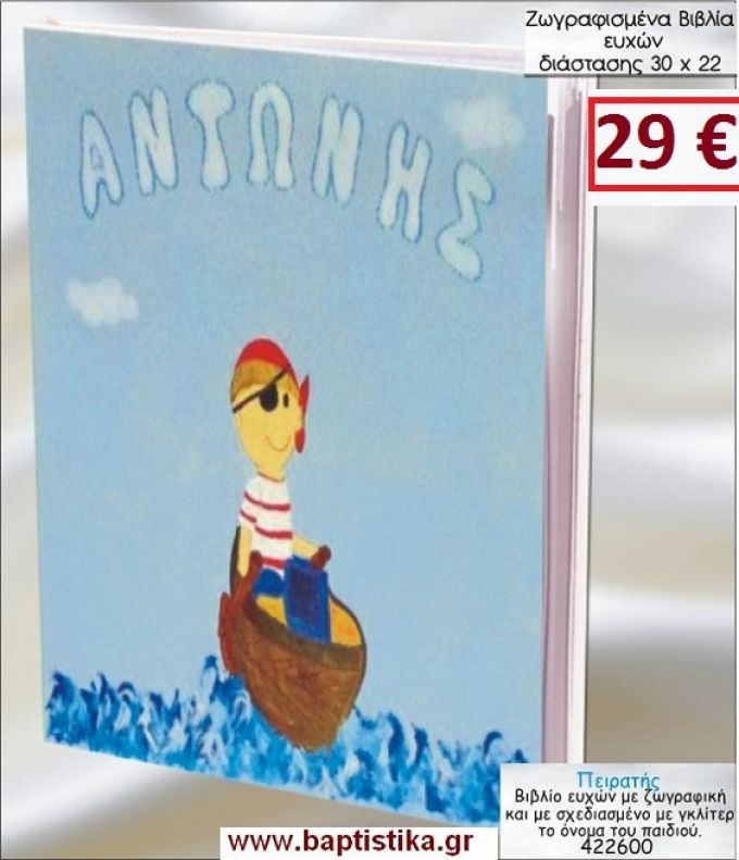 ΠΕΙΡΑΤΗΣ ΒΙΒΛΙΟ ΕΥΧΩΝ ΒΑΠΤΙΣΗΣ 30*22 ΖΩΓΡΑΦΙΣΜΕΝΟ ΣΤΟ ΧΕΡΙ σε οικονομικές και φθηνές τιμές Ιλισια Ζωγράφου
