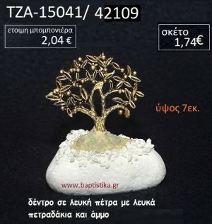 δέντρο λευκό σμάλτο επίχρυσο σε κύκλο πάνω σε βότσαλο αντ 21144