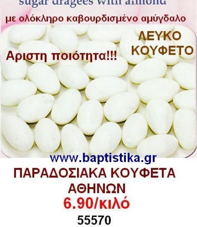 Η τιμή περιλαμβανει ΦΠΑ και αφορα ποσότητα 290-300 κουφέτα αμυγδάλου στο κιλό