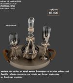 Το σετ περιέχει 1 καράφα , 1 ποτήρι κρασιού και 1 δίσκο.