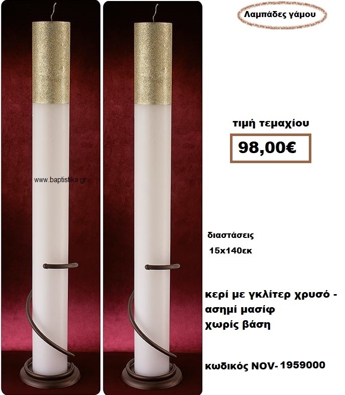 ", "category" : "ΛΑΜΠΑΔΕΣ & ΚΕΡΙΑ γάμου", "sku": "16664", "offers": { "@type": "Offer", "priceCurrency": "EUR", "price": "98", "priceValidUntil": "2025-12-22", "url" : "https://www.vip-mpomponiera.gr/portal/proionta/goneis/lampades-keria-gamou-se-oikonomikes-fthines-times/lampada--keria-gamou-me-gliter-xryso-masif-xoris-vasi-nov-1959000-detail", "itemCondition": "http://schema.org/NewCondition", "availability": "http://schema.org/InStock" } }