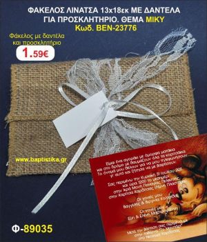 ΠΡΟΣΚΛΗΤΗΡΙΟ ΦΑΚΕΛΟΣ ΛΙΝΑΤΣΑ 13χ18 ΜΕ ΔΑΝΤΕΛΑ. ΘΕΜΑ ΜΙΚΥ προσκλητηρια και μπομπονιέρες βάπτισης - γαμου & δώρα πάρτυ σε οικονομικές και φτηνές τιμές Ιλισια Ζωγραφου ΜΕΓΑΛΕΣ ΠΡΟΣΦΟΡ