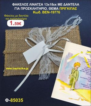 ΠΡΟΣΚΛΗΤΗΡΙΟ ΦΑΚΕΛΟΣ ΛΙΝΑΤΣΑ 13χ18 ΜΕ ΔΑΝΤΕΛΑ. ΘΕΜΑ ΠΡΙΓΚΙΠΑΣ προσκλητηρια και μπομπονιέρες βάπτισης - γαμου & δώρα πάρτυ σε οικονομικές και φτηνές τιμές Ιλισια Ζωγραφου ΜΕΓΑΛΕΣ ΠΡ
