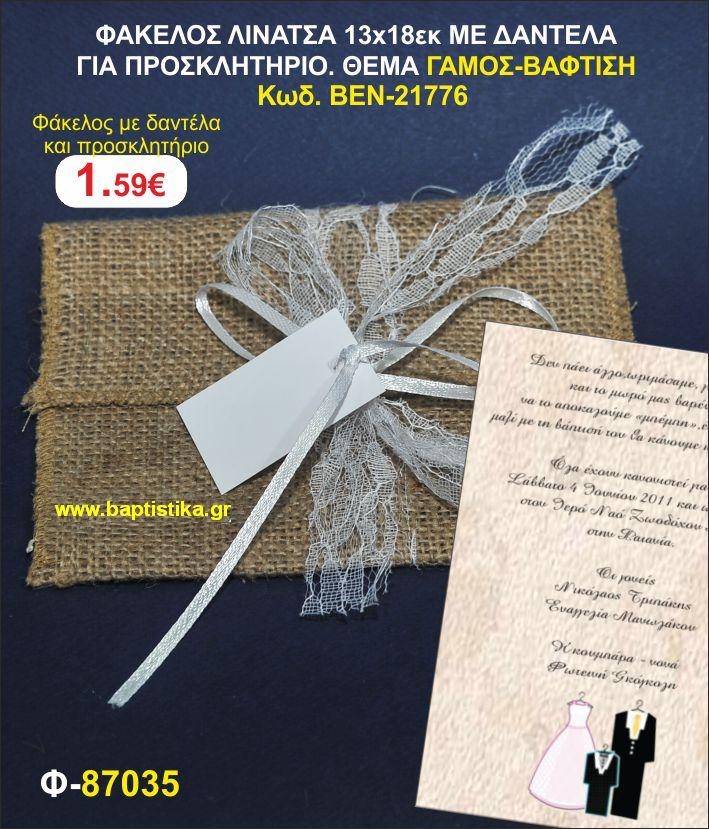 ΠΡΟΣΚΛΗΤΗΡΙΟ ΦΑΚΕΛΟΣ ΛΙΝΑΤΣΑ 13χ18 ΜΕ ΔΑΝΤΕΛΑ. ΘΕΜΑ ΓΑΜΟΣ ΒΑΦΤΙΣΗ προσκλητηρια και μπομπονιέρες βάπτισης - γαμου & δώρα πάρτυ σε οικονομικές και φτηνές τιμές Ιλισια Ζωγραφου ΜΕΓΑΛΕ