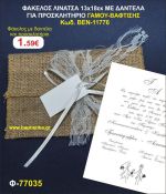ΠΡΟΣΚΛΗΤΗΡΙΟ ΦΑΚΕΛΟΣ ΛΙΝΑΤΣΑ 13χ18 ΜΕ ΔΑΝΤΕΛΑ. ΘΕΜΑ ΓΑΜΟΥ ΒΑΦΤΙΣΗΣ προσκλητηρια και μπομπονιέρες βάπτισης - γαμου & δώρα πάρτυ σε οικονομικές και φτηνές τιμές Ιλισια Ζωγραφου ΜΕΓΑΛ