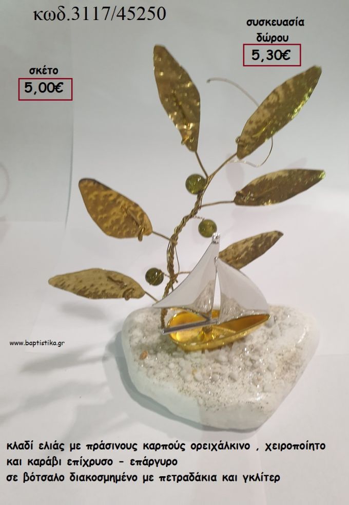 ΚΛΑΔΙΑ ΕΛΙΑΣ ΜΕ ΠΡΑΣΙΝΟΥΣ ΚΑΡΠΟΥΣ ΟΡΕΙΧΑΛΚΙΝΟ ΚΑΙ ΚΑΡΑΒΙ ΕΠΑΡΓΥΡΟ - ΕΠΙΧΡΥΣΟ ΣΕ ΒΟΤΣΑΛΟ για γούρι - δώρο ΤΖΑ-3117/45250 5.30€!!!