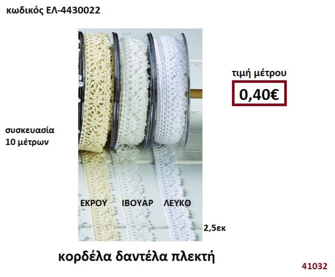 ΚΟΡΔΕΛΑ ΔΑΝΤΕΛΑ ΠΛΕΚΤΗ ΕΚΡΟΥ-ΙΒΟΥΑΡ-ΛΕΥΚΟ 10 μέτρων 2,5εκ. για μπομπονιέρες-αμπαλάζ ΕΛ-4430022