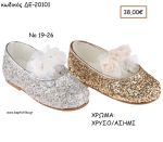 ΠΑΠΟΥΤΣΙΑ ΒΑΠΤΙΣΗΣ ΑΝΑΤΟΜΙΚΑ ΜΠΑΛΑΡΙΝΑ ΜΕ ΓΚΛΙΤΕΡ ΚΑΙ ΥΦΑΣΜΑΤΙΝΑ ΛΟΥΛΟΥΔΙΑ ΣΕ ΧΡΩΜΑ ΧΡΥΣΟ Η' ΑΣΗΜΙ ΚΩΔ. ΔΕ-20101 38.00€!!!