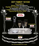 Η τιμή περιλαμβάνει 2 φωτιστικά δαπέδου (ινοξ,μπρονζέ η σκουριά) στέφανα επάργυρα αμετάβλητα,δίσκος ινοξ αμετάβλητος,μποτίλια κρυστάλλινη,3 ποτήρια κρυστάλλινα και ΦΠΑ