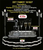 Η τιμή περιλαμβάνει 2 φωτιστικά δαπέδου (ινοξ,μπρονζέ η σκουριά) στέφανα επάργυρα αμετάβλητα,δίσκος ινοξ αμετάβλητος,μποτίλια κρυστάλλινη,3 ποτήρια κρυστάλλινα και ΦΠΑ