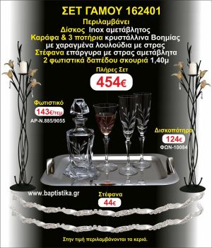 ΦΩΤΙΣΤΙΚΑ ΔΑΠΕΔΟΥ, ΣΤΕΦΑΝΑ ,ΜΠΟΤΙΛΙΑ,3 ΠΟΤΗΡΙΑ,ΔΙΣΚΟΣ πακετο Γάμου 161002