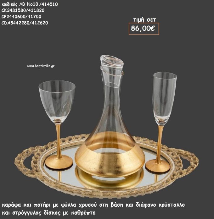 ΣΕΤ ΓΑΜΟΥ ΚΑΡΑΦΑ , ΠΟΤΗΡΙ ΜΕ ΦΥΛΛΑ ΧΡΥΣΟΥ ΚΑΙ ΔΙΣΚΟΣ ΣΤΡΟΓΓΥΛΟΣ ΜΕ ΚΑΘΡΕΠΤΗ ΛΒ Νο10/414510 86,00€!!!