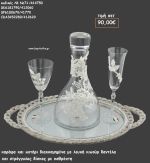 Το σετ περιέχει 1 καράφα , 1 ποτήρι κρασιού και 1 δίσκο.