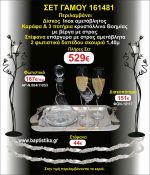 Η τιμή περιλαμβάνει 2 φωτιστικά δαπέδου (ινοξ,μπρονζέ η σκουριά) στέφανα επάργυρα αμετάβλητα,δίσκος ινοξ αμετάβλητος,μποτίλια κρυστάλλινη,3 ποτήρια κρυστάλλινα και ΦΠΑ