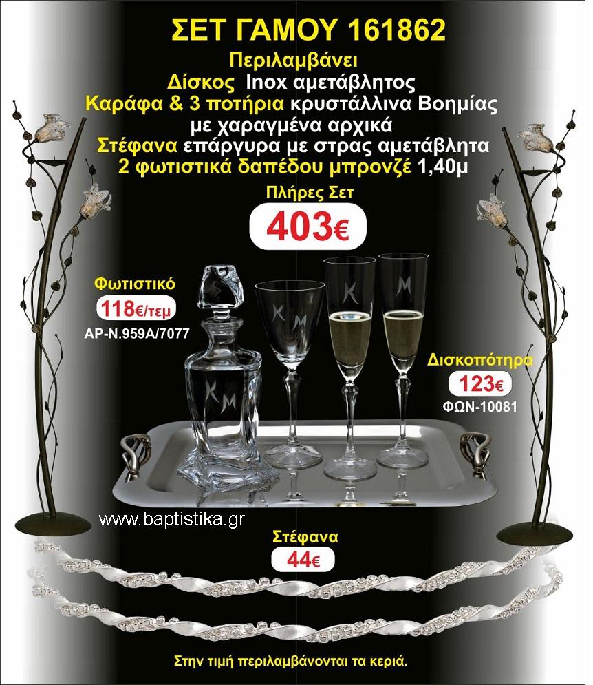 ΦΩΤΙΣΤΙΚΑ 2 τεμάχια ΣΤΕΦΑΝΑ ,ΔΙΣΚΟΣ,ΜΠΟΤΙΛΙΑ,ΠΟΤΗΡΙΑ 3 τεμάχια , ΣΕΤ Γάμου 161862
