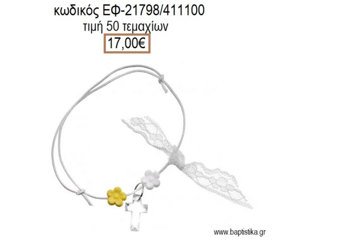 ΜΑΡΤΥΡΙΚΟ ΒΑΠΤΙΣΗΣ ΒΡΑΧΙΟΛΙ ΧΡΩΜΑ ΛΕΥΚΟ ΜΕ ΔΙΑΦΑΝΟ ΣΤΑΥΡΟ ΚΑΙ ΜΑΡΓΑΡΙΤΕΣ ΕΦ-21798/411100 17.00€!!!