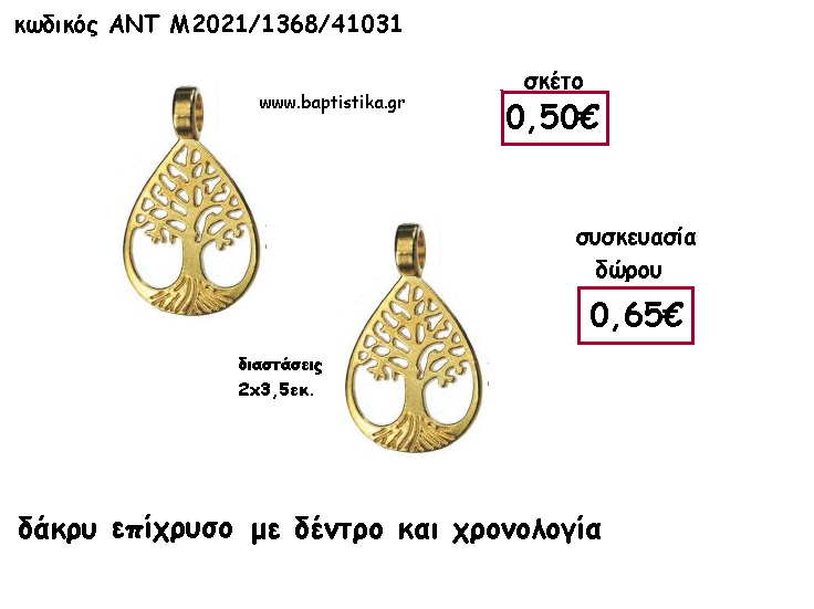ΔΕΝΤΡΟ ΣΕ ΔΑΚΡΥ ΜΟΤΙΦ ΕΠΙΧΡΥΣΟ ΜΕΤΑΛΛΙΚΟ για γούρι - δώρο ΑΝΤ-2021/1368/41031 0.65€!!!