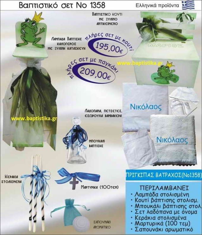 ", "category" : "ΒΑΤΡΑΧΟΣ ΠΡΙΓΚΙΠΕΣ μπομπονιέρες βάπτισης,στολισμοί εκκλησίας,βαπτιστικά πακέτα,δώρα πάρτι, μαιευτηρίου", "sku": "7627", "offers": { "@type": "Offer", "priceCurrency": "EUR", "price": "195", "priceValidUntil": "2025-12-21", "url" : "https://www.vip-mpomponiera.gr/portal/proionta/nonos/186-214-vaptistika-set-paketa-gia-nono/prigkipas-vatraxos-no1358-vaptistiko-set-paketo-vaptisis-mono-195-detail", "itemCondition": "http://schema.org/NewCondition", "availability": "http://schema.org/InStock" } }Η ΤΙΜΗ ΠΕΡΙΛΑΜΒΑΝΕΙ ΠΛΗΡΕΣ ΒΑΠΤΙΣΤΙΚΟ ΣΕΤ ΟΠΩΣ ΒΛΕΠΕΤΕ ΣΤΗΝ ΕΙΚΟΝΑ ΠΟΥ ΠΕΡΙΕΧΕΙ..
