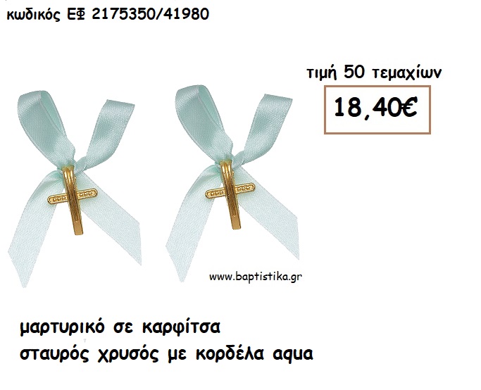 ΜΑΡΤΥΡΙΚΑ ΒΑΠΤΙΣΗΣ ΜΕ ΚΑΡΦΙΤΣΑ ΣΤΑΥΡΟΣ ΧΡΥΣΟΣ ΜΕ ΚΟΡΔΕΛΑ ΧΡΩΜΑ AQUA ΕΦ 2175350/41980