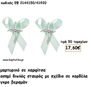 ΜΑΡΤΥΡΙΚΑ ΒΑΠΤΙΣΗΣ ΜΕ ΚΑΡΦΙΤΣΑ ΣΤΑΥΡΟΣ ΔΙΠΛΟΣ ΑΣΗΜΙ ΣΕ ΒΕΡΑΜΑΝ ΓΚΡΟ ΚΟΡΔΕΛΑ ΕΦ 2144150/41920